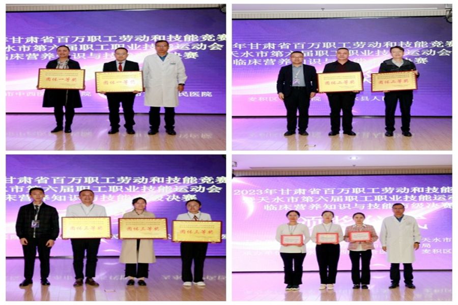 竞赛分为理论笔试和团体赛两部分。理论笔试通过现场答题形式进行;团体赛包括知识竞答、实践技能比拼和科普传播技能展示三个环节。经过一天的激烈角逐,天水市中西医结合医院和天水市第一人民医院代表队获得团体一等奖;麦积区中医医院和清水县人民医院代表队获得团体二等奖;甘谷县人民医院、天水市第四人民医院和天水市中医医院代表队获得团体三等奖;选手耿艳艳、陈海红和张蕴荣获个人一等奖。与会领导为个人和团体一、二、三等奖获奖选手和获奖单位分别颁发了荣誉证书和奖牌。