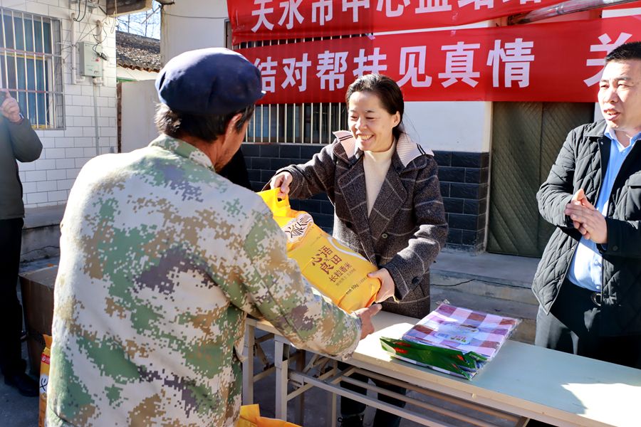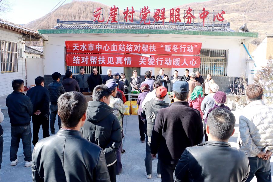 12月6日,天水市中心血站党支部书记、站长刘雪梅带领结对帮扶干部赴武山县滩歌镇元崖村开展结对关爱行动暨“暖冬行动”慰问活动。
