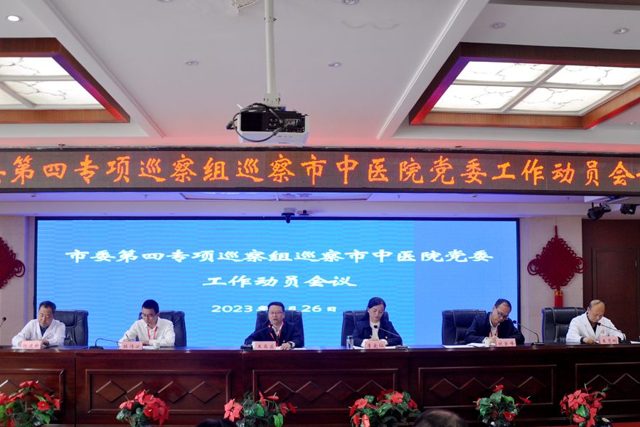 根据八届市委第四轮巡察统一部署,2023年9月26日,市委第四专项巡察组巡察市中医医院党委工作动员会召开。会前,市委第四专项巡察组组长王再盛主持召开与被巡察党组织主要负责人及班子成员的见面沟通会,通报有关情况。会上,王再盛传达了市委主要领导在八届市委第四轮巡察暨医疗卫生领域专项巡察动员部署会上的讲话精神并通报了巡察工作有关任务,市纪委副书记、市监委副主任、市委巡察工作领导小组成员李爱仙出席会议并做动员讲话。市中医医院党委书记王志刚主持会议并作表态发言。市委第四专项巡察组全体成员,市中医医院党委班子成员、各支部委员和各科室负责人共85人参加会议。