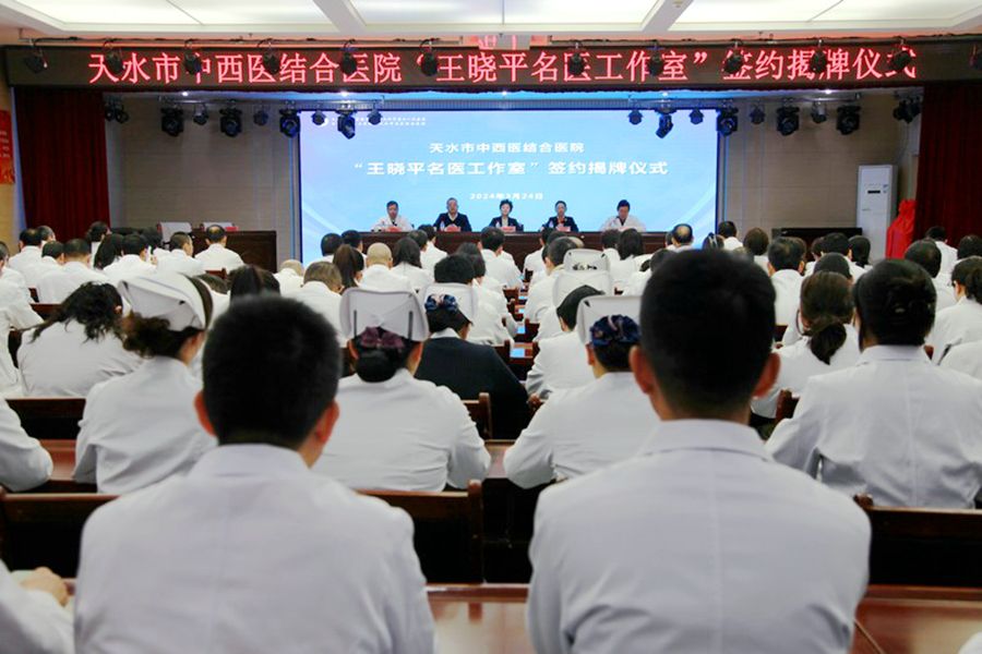 3月24日,“王晓平名医工作室”签约揭牌仪式在天水市中西医结合医院(市二院)举行。副市长汪小娟出席签约揭牌仪式。市卫生健康委党组书记、主任王定新主持仪式。市二院领导班子成员、中层干部和科室业务骨干共180余人参加仪式。
