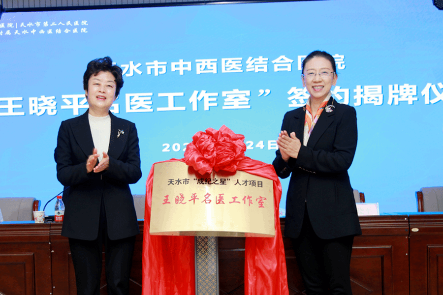 会上,汪小娟与王晓平共同为天水市中西医结合医院“王晓平名医工作室”揭牌,王晓平和市二院院长唐志锋签订了合作协议。