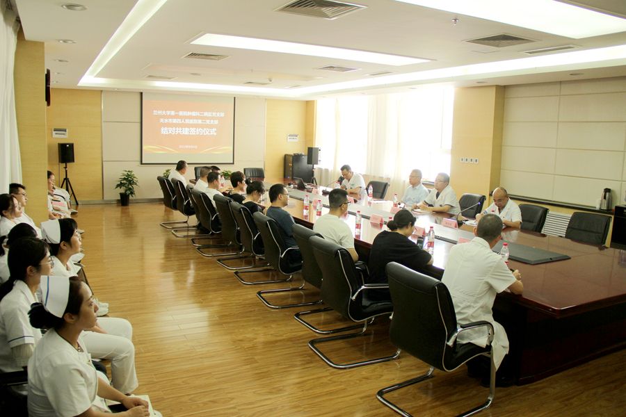 在党支部结对共建签约仪式上,兰大一院肿瘤科二病区(放疗科)党支部书记、主任冉俊涛介绍了支部与学科建设情况,希望在今后的工作中通过支部融合共建活动,不断强化组织队伍建设,采取互助协作的方式,开展支部间交流,交往互助、学习共鉴、共同发展。市四院副院长谢会军指出,要通过支部结对共建加强交流,找差距、补短板,坚持党建与业务相融合,全面提升医院综合实力,为百姓健康服务。