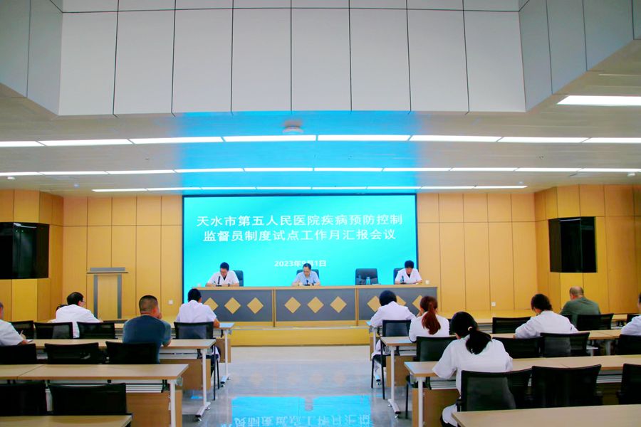 9月1日,市五院召开疾病预防控制监督员试点工作月汇报会暨业务培训会议。院长助理赵泽颢主持会议。院领导班子成员、各科室负责人参加会议。