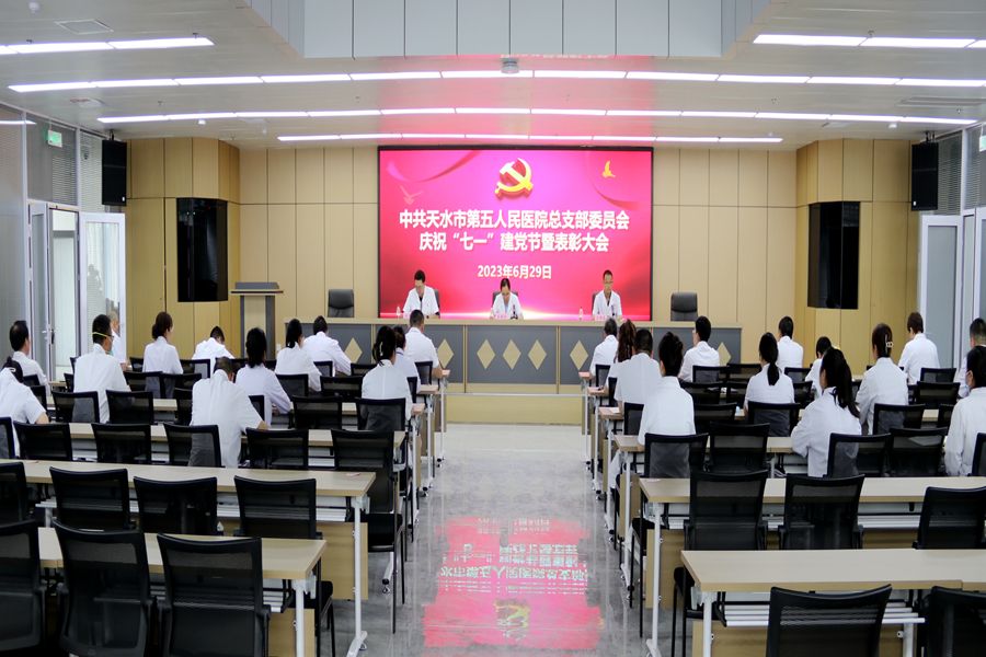 在中国共产党成立102周年之际,为重温党的光辉历程,讴歌党的丰功伟绩,表彰全院涌现出的优秀共产党员、优秀党务工作者,更好地动员广大党员干部解放思想、与时俱进、团结拼搏、扎实工作,为医院高质量发展而努力奋斗。6月29日,天水市第五人民医院召开庆祝中国共产党成立102周年暨“七一”表彰大会。医院全体党员参加会议。