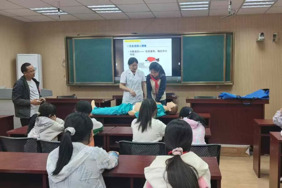 现场氛围专业而热烈,部分学生踊跃上台体验操作,医护人员在旁指导纠正,让理论知识转化为实践能力。此次专题讲座将理论讲解与实操演示相结合,既普及了安全避险知识,又提升了学生应对突发状况的急救技能,为构建平安校园增添了一份保障。