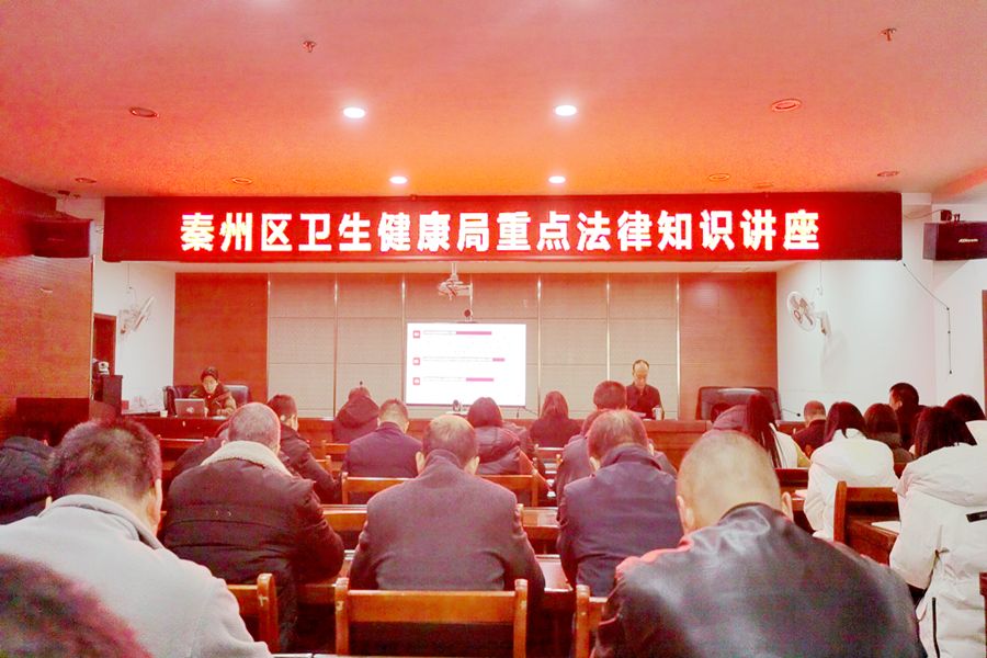 为进一步提升干部职工法律意识和法律素养,提高卫生健康系统依法行政工作水平。1月8日,秦州区卫生健康局邀请甘肃天秦律师事务所王晓蕾律师进行法律知识专题辅导讲座。区委卫生健康工委副书记杨向忠主持会议。