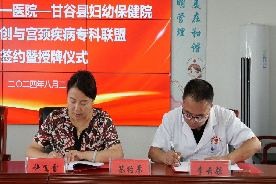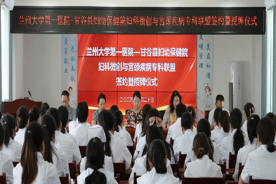 8月20日,兰州大学第一医院—甘谷县妇幼保健院妇科微创与宫颈疾病专科联盟签约暨授牌仪式举行。县卫健局负责人,兰大一院妇产科专家、主任医师许飞雪、王梅及县妇幼保健院医师代表参加活动。