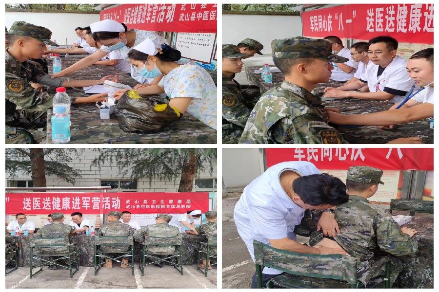 7月30日,在“八一”建军节来临之际,县卫生健康局联合县退役军人事务局,组织武山县人民医院医共体总医院和武山县中医医院医共体总医院医务人员赴驻武部队开展军民同心庆“八一”送医送健康进军营活动。通过义诊、心理健康讲座、健康知识宣传等多种形式,为部队官兵带去健康保障,筑牢健康防线。