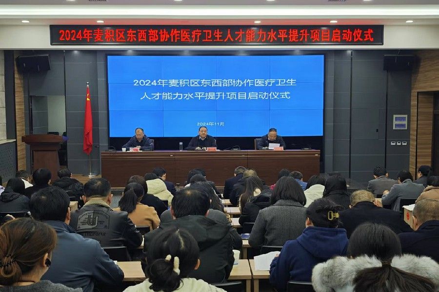 11月18日上午,2024年麦积区东西部协作医疗卫生人才能力水平提升启动仪式在麦积区委党校顺利举办。区卫健局主要领导、分管领导,天津市西青区医疗人才“组团式”帮扶工作队队长和区人民医院、市四院、区中医院专家代表出席仪式。各镇卫生院(分院)、社区卫生服务机构业务负责人和临床骨干共计150余人参加活动。