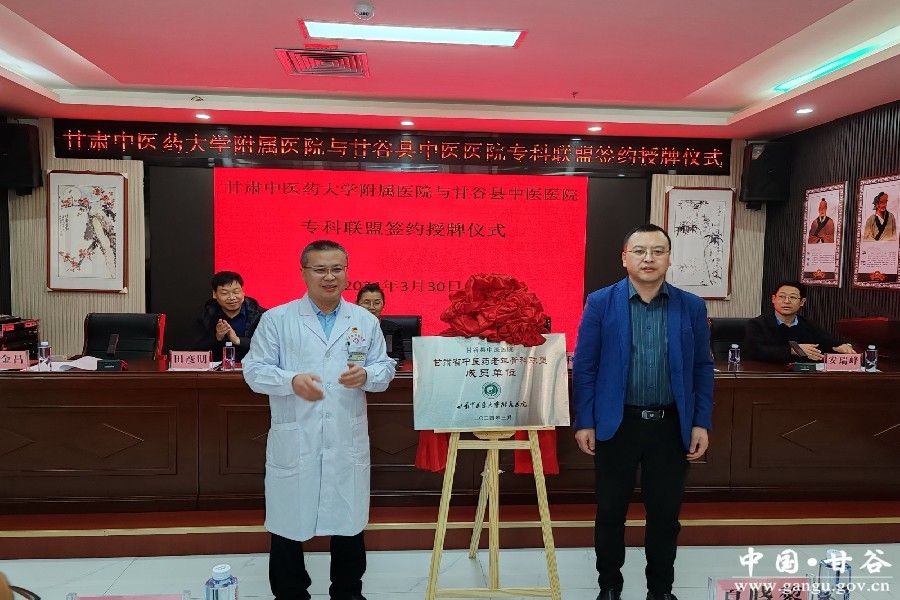 3月30日,甘肃中医药大学附属医院与甘谷县中医医院专科联盟签约授牌仪式在甘谷县中医医院举行,甘肃中医药大学附属医院谢兴文团队一行14名专家、县卫健局分管领导,县中医院领导班子及职工代表、各乡镇卫生院医疗骨干等70余人参会。