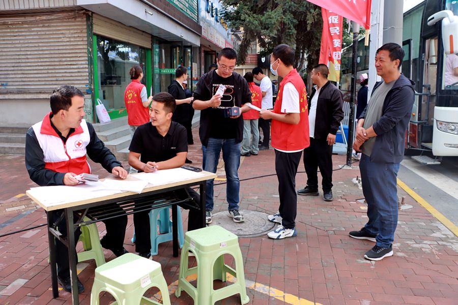 活动开展期间,张家川县卫健局、县红十字会组织张家川县红十字无偿献血志愿者服务队队员积极开展无偿献血宣传和志愿服务,为参加献血的干部职工及过往群众进行表格填写指导、献血流程指引、政策咨询解答、科普知识宣传,热心细致的为前来献血的爱心人士提供服务。