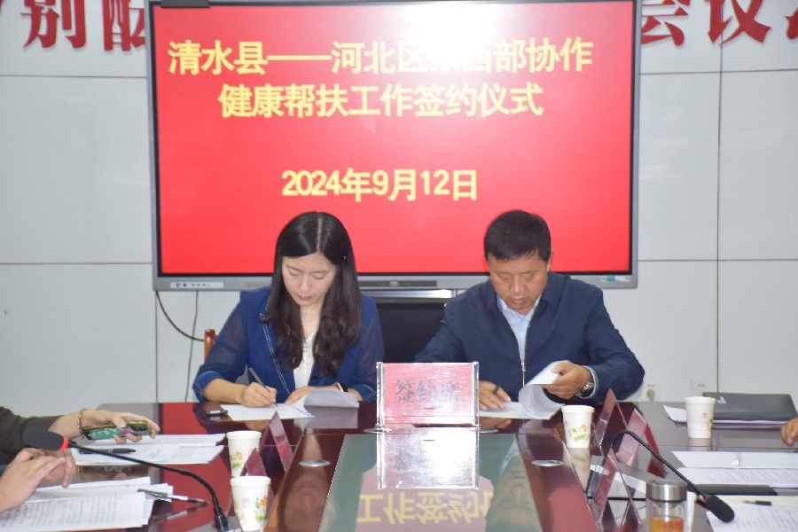 座谈会后,河北区卫健委与清水县卫健局签订了《对口支援乡村卫生室服务能力建设工作合作协议书》,天津市第一医院与清水县中医医院、天津市第二医院与清水县人民医院分别签订了《结对帮扶协议书》。