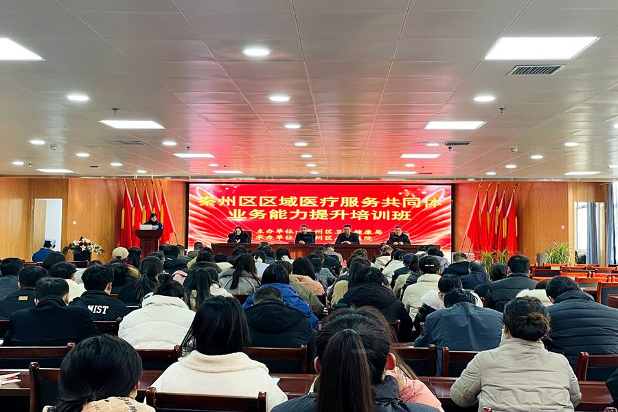 为进一步深化医药卫生体制改革,构建优质高效整合型医疗卫生服务体系,提升区域内各医疗卫生机构服务能力。12月8日,由秦州区卫生健康局主办,秦州区人民医院承办的秦州区区域医疗服务共同体业务能力提升培训班开班。区人民医院党委书记李一峰、院长于恺参加开班仪式。全区乡镇卫生院院长、社会办医疗机构负责人及各单位相关医疗技术人员共100余人参加培训。