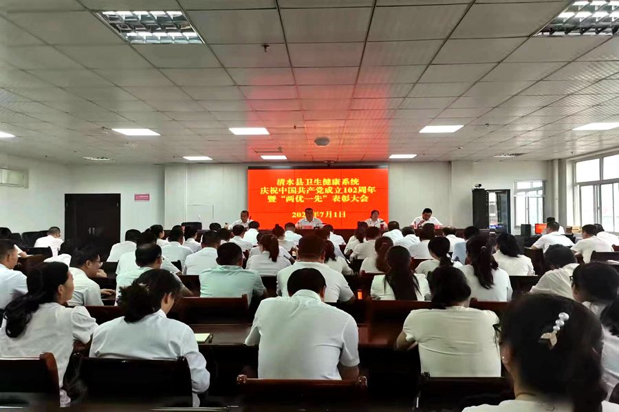 为庆祝中国共产党成立102周年,回顾党的光荣历史,讴歌党的丰功伟绩,展望辉煌前程,表彰卫生健康系统先进集体和优秀个人。7月1日,清水县委卫生健康工委召开卫生健康系统庆祝中国共产党成立102周年暨“两优一先”表彰会。县卫生健康局党组成员,卫生健康工委所属各基层党组织书记,优秀党员、老党员和党务工作者代表,局机关全体党员共80余人参加会议。