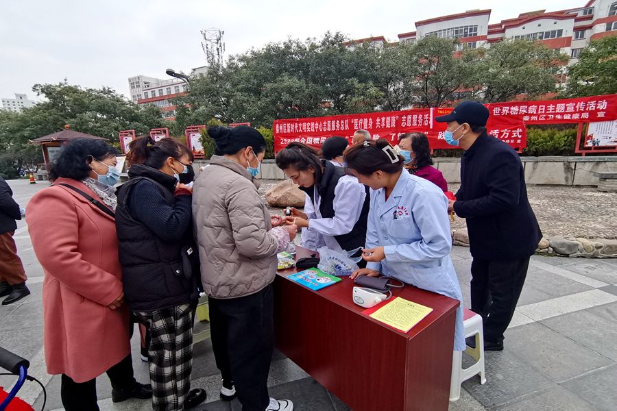 11月14日是第17个“世界糖尿病日”。为提高群众防控糖尿病的意识,11月14日上午,秦州区卫生健康局联合中城街道办事处、中城社区卫生服务中心,在玉泉广场开展了以“了解风险、了解应对”为主题的“世界糖尿病日”主题宣传服务活动。