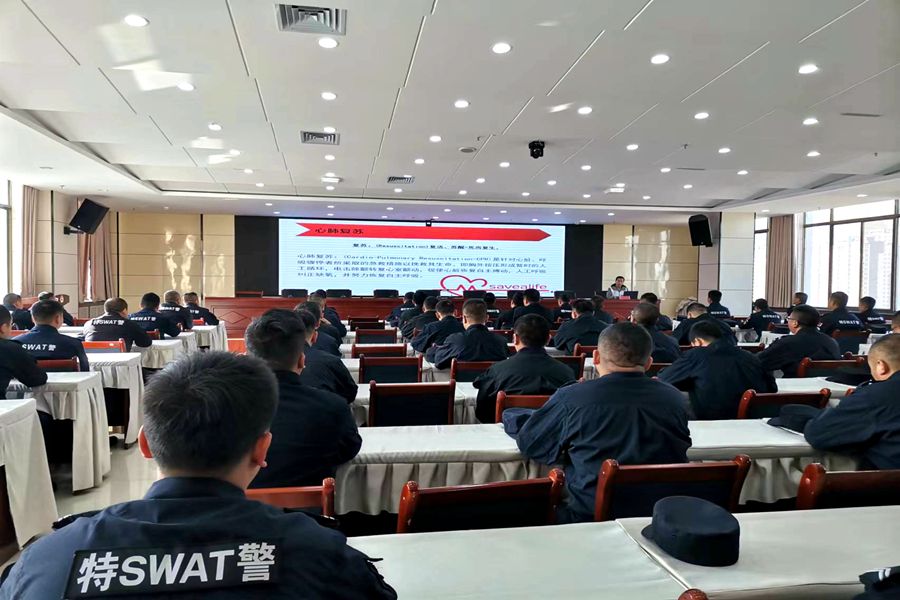 活动中,应急救护培训讲师讲解了止血、包扎、晕厥、气道异物梗阻现场急救等知识,并现场演示了心肺复苏术和AED联合使用的急救方法。整个培训现场教学氛围浓厚,学习热情高涨,民辅警们仔细聆听,认真观看,动手参与到应急救护实操训练中。授课老师针对大家的实操动作进行耐心指导,及时纠正错误,对大家的疑惑进行细致讲解,确保当意外真正发生时每个人都能做到“敢救、会救、能救”。