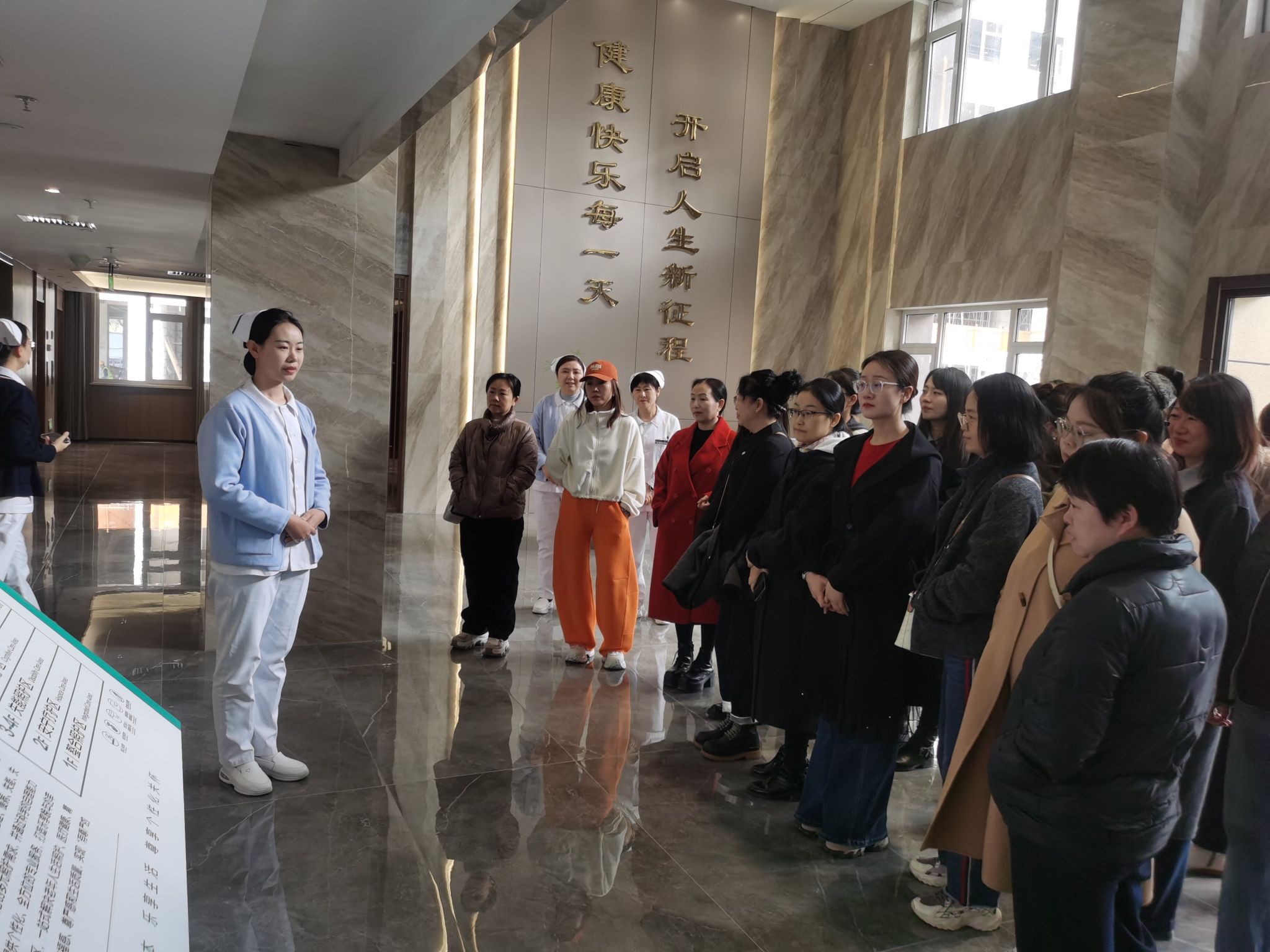 女职工们依次走进特色诊疗科室、健康管理中心、文化建设阵地、宣传科普专区等场所。每到一处,大家都认真聆听讲解、仔细查看细节,沉浸式了解医院在学科建设、服务模式、健康科普、品牌宣传、人文服务等方面的创新实践与特色亮点。在健康管理中心,大家详细询问全周期健康服务流程与个性化体检方案,对医院“以患者为中心”的服务理念频频点头;在宣传科普专区,大家驻足观看科普展板、短视频作品与新媒体运营成果,认真记录科普内容创作、传播渠道拓展的实用经验;在文化建设阵地,医院浓厚的人文氛围、规范的精细化管理模式,让参观人员直观感受到医疗服务的温度与品质。