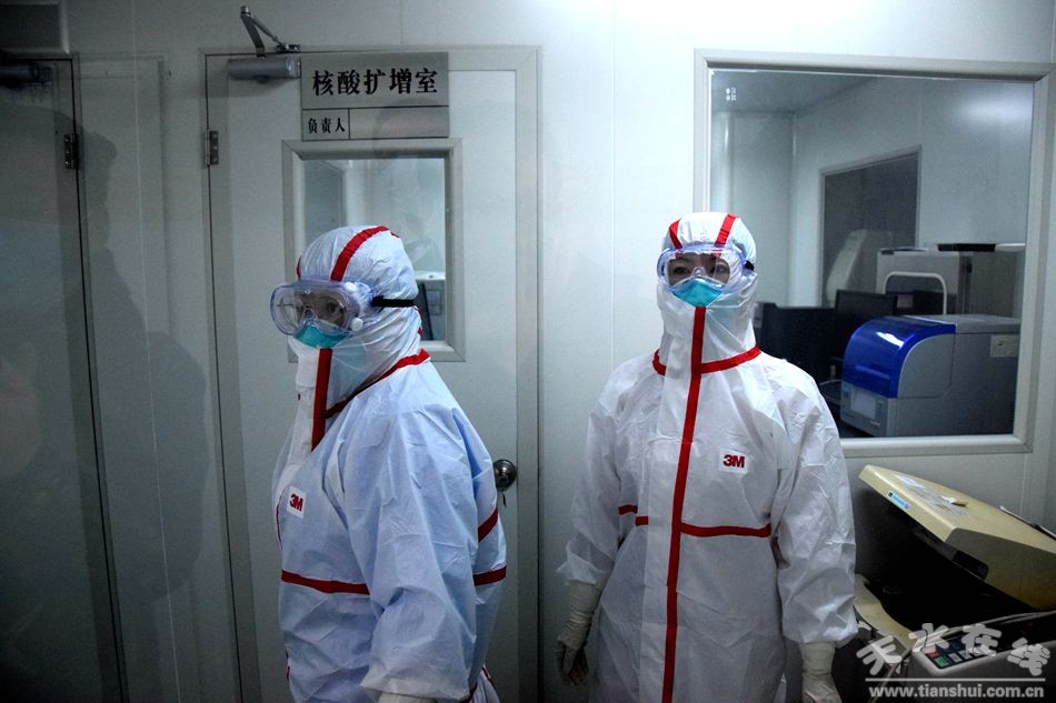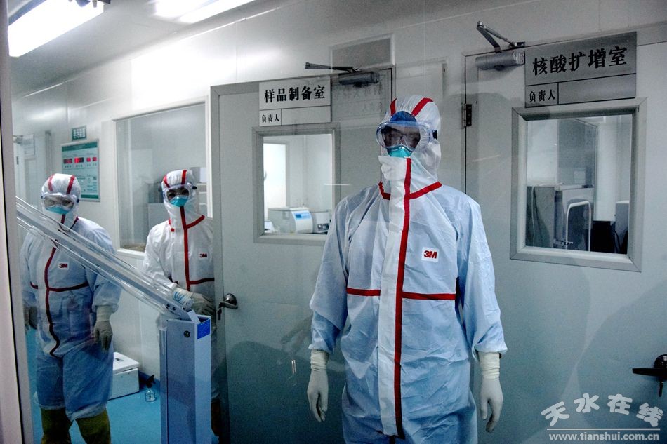 在此次战“疫”中,天水市疾控中心实验室承担着全市所有采集样本的核酸检测工作。目前实验室21人排了6班,接样本的人一人一班12小时,人休班不休,其他人实验室连轴转,拿到样本连夜检测。