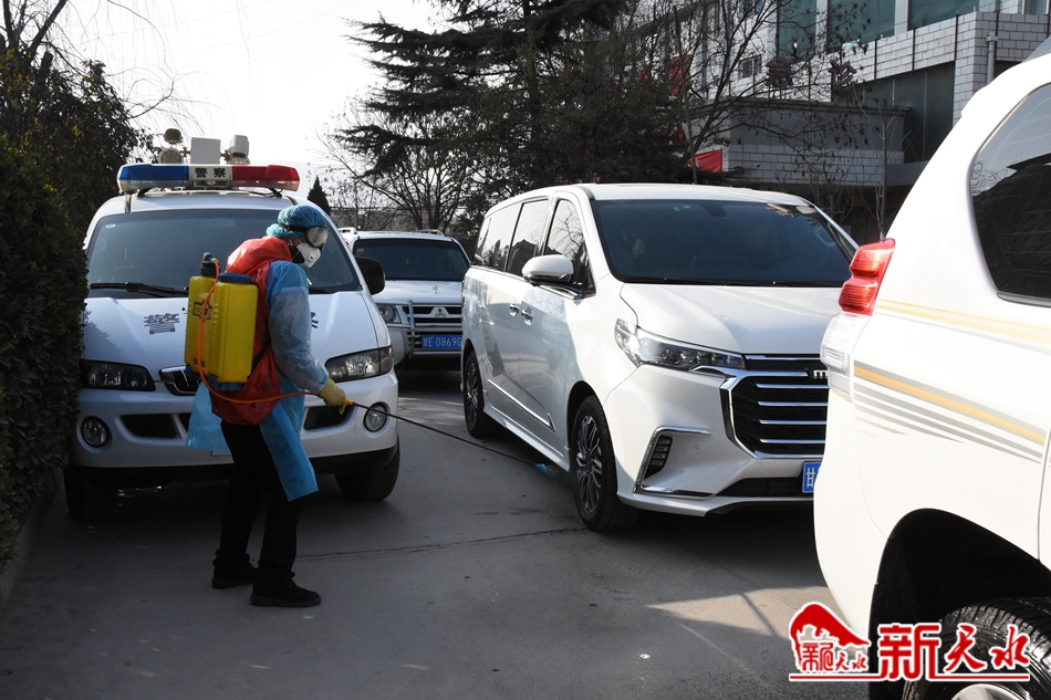 防疫人员对村子巷道进行消毒
