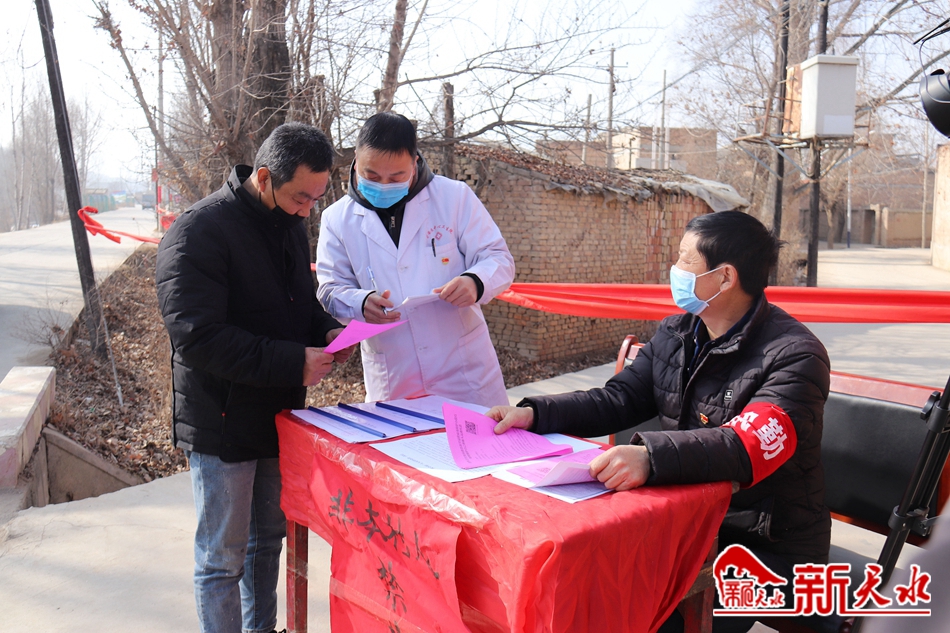 村镇路口对进出人员进行宣传检查