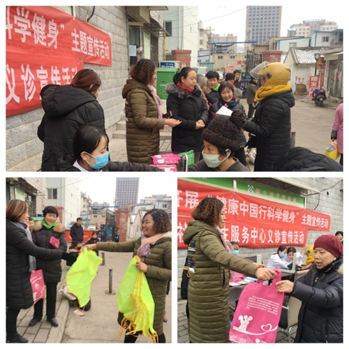 活动紧紧围绕科学健身来开展。在秦州区东关街道,街道办事处在新华路联合东关社区卫生服务中心开展“健康中国行科学健身”主题宣传活动。活动现场悬挂横幅,开展现场咨询50人余次、测量血压10人次、发放健康科普知识宣传册和健康扶贫政策宣传品120余份、围裙100余条、手提袋120余条、药具80余盒。受益人数共计300余人,计生站工作人员热情的态度、优质的服务、精通的业务知识受到了群众的一致好评。
