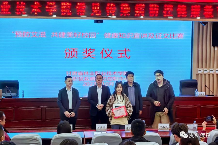 为提高青年学生对艾滋病危害的认识,预防艾滋病的传播和蔓延,营造全民参与艾滋病防治工作的良好氛围。近日,麦积区卫生健康局联合区疾控中心、甘肃林业职业技术学院举办“携手抗艾防艾进校园”有奖征文活动。