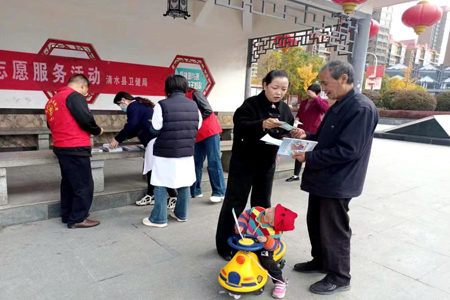 为深入推进学习贯彻习近平新时代中国特色社会主义思想主题教育走深走实,充分发挥党员先锋模范作用,引导党员干部以实际行动践行初心使命。10月31日,清水县卫健局机关党支部联合东关社区在充国广场、城区路段等地共同开展“为党旗添光彩,为群众办实事”结对共建志愿服务活动,为群众送去健康科普新风、送去医疗志愿服务关爱,倡导群众践行文明健康的生活方式。