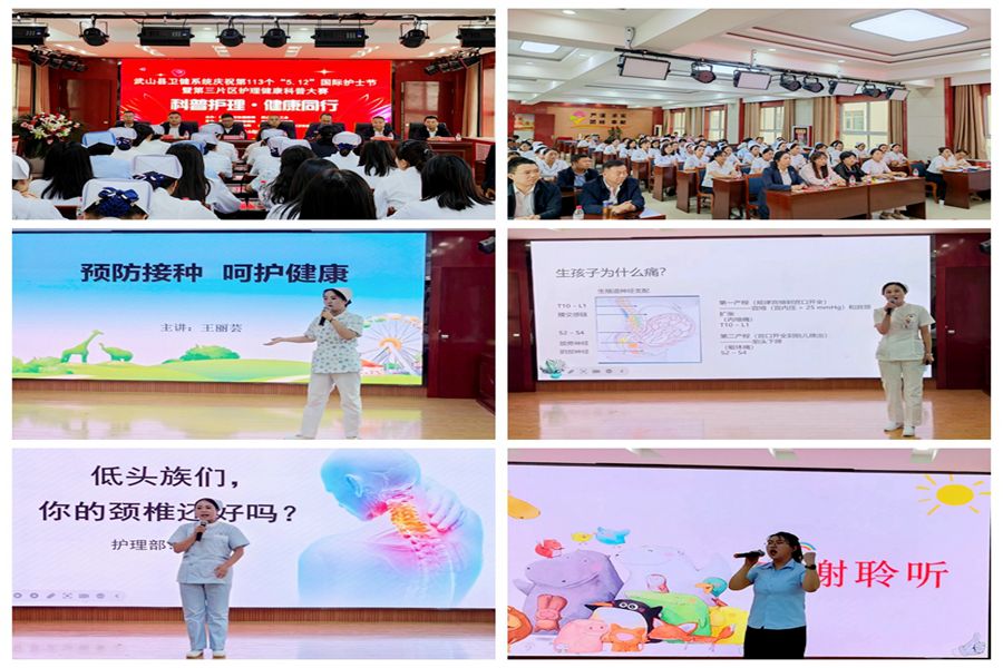 第三片区由县妇幼保健院牵头,组织本院区护理人员和马力中心卫生院、滩歌中心卫生院、山丹卫生院、高楼卫生院护理工作者在5月10日下午,开展“科普护理,健康同行”健康科普宣讲大赛,活动现场,大家激情澎湃,热情四溢,参赛者借助多媒体等方式讲解健康科普知识,条理清晰,思维严谨,内容丰富多彩,突出了护理专业特色及优势,充分彰显了护理人员良好的精神风貌。