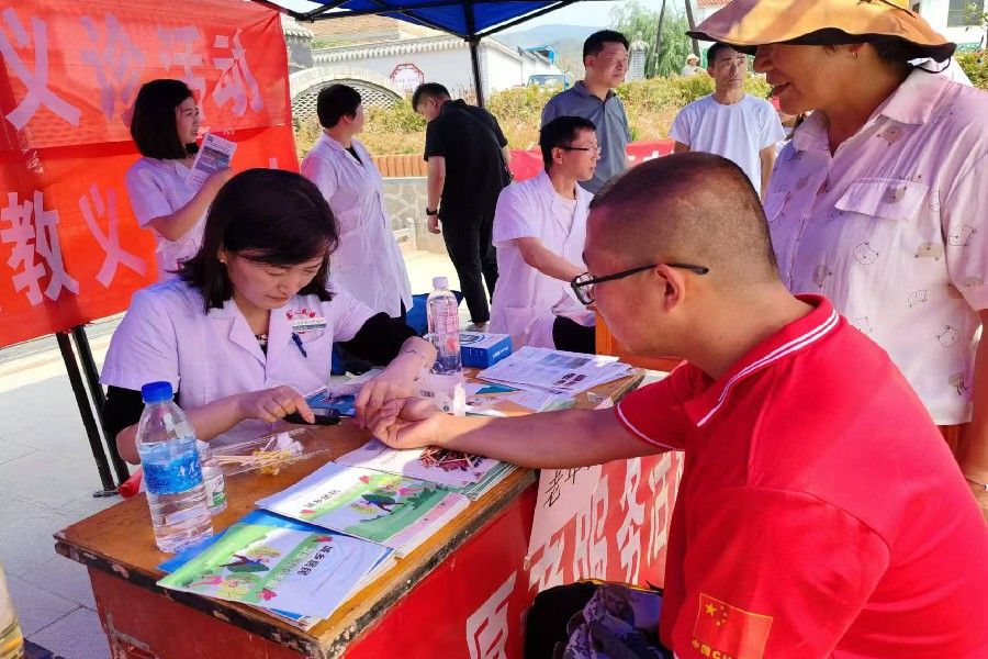 新时代文明实践医疗志愿服务队积极为群众测血压、血糖,开展义诊,并就秋冬季常见病、多发病的预防和常用药品等进行健康科普知识宣讲,现场为群众答疑解难,提供专业指导。