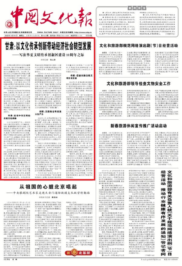 甘肃是华夏文明和中华民族重要的发祥地,是中华民族重要的文化资源宝库,其厚重历史文化和丰厚的传统文化底蕴积淀千年。2013年1月,国务院办公厅批复支持甘肃建设华夏文明传承创新区(简称“华创区”),要求以华创区建设为平台整体推进文化大省建设。华创区建设由此上升至国家战略层面。以此为载体,经过十年的建设发展及不断实践探索,甘肃走出了一条以文化传承创新带动经济社会转型发展的新路。