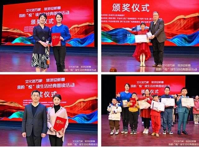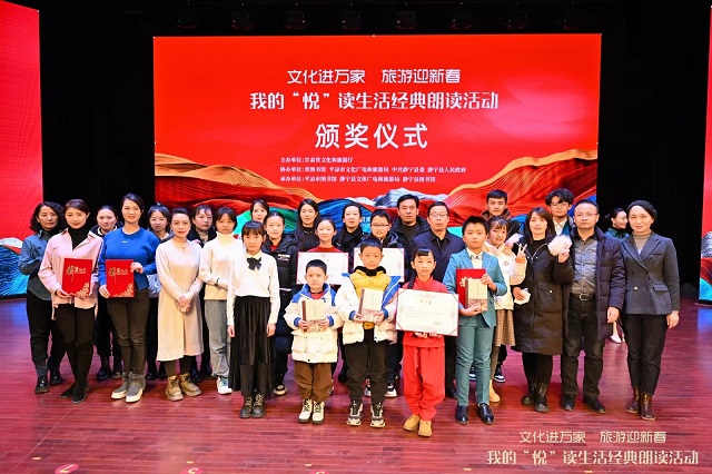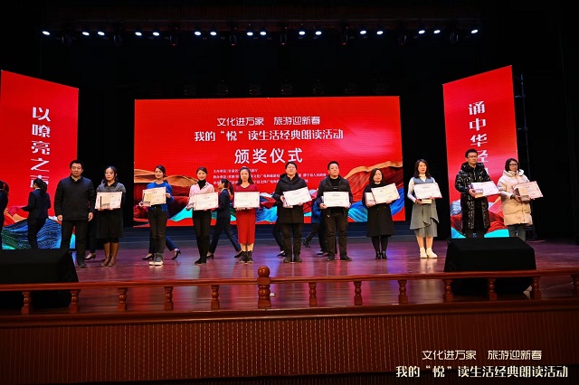 1月16日晚,省文化和旅游厅在平凉静宁剧院举行了全省“文化进万家·旅游迎新春”我的“悦”读生活经典朗读活动颁奖仪式。5名选手(组合)荣获一等奖、22名选手(组合)荣获二等奖、41名选手(组合)荣获三等奖、120名选手(组合)荣获优秀奖。?