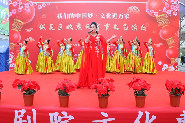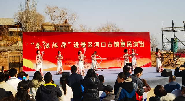 元宵节期间,省歌剧院“陇原红色文艺轻骑兵”演出小分队来到了康乐县,为当地群众带来美好的节日祝福,歌舞《陇原儿女齐祝福》、敦煌舞蹈《伎乐天》、器乐联奏《丰收家园》等精彩节目轮番上演,让当地群众零距离感受到了舞台艺术的无穷魅力。省歌舞剧院在河口古镇组织“春绿陇原”进景区文化惠民演出活动,以线上线下相结合的方式,让广大市民和来兰游客共享文艺大餐。甘肃秦腔艺术剧院在白银市文化广场开展“我们的节日·春节”戏曲专场演出,吸引5万余人次观看,让当地戏迷过足戏瘾的同时,也让广大群众深深感受到了传统戏曲的独特魅力。省陇剧院、省话剧院联袂兰州市部分文艺团体同台献艺,舞蹈、歌曲、小品等众多精心编排的文艺节目,给金城百姓带来了一场家门口的视听盛宴。由省民族歌舞团演出的“凝心聚力共奋进奋楫扬帆启新程”民族歌舞文艺演出在兰州新区职教园区大学生活动中心精彩上演。