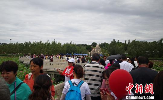 7月19日至28日,甘肃省白银市白银区举行白银区第三届荷花美食暨乡村文化旅游节。众多游客来到母亲河畔,体验激情黄河游。图为游人如织,开启“人海”模式。 钟欣 摄