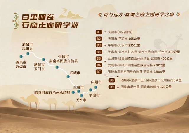 题记:9月27日,甘肃省文化和旅游厅联合酒泉市人民政府、读者出版集团有限公司共同举办“研学丝绸古道·旅行如意甘肃”——2023甘肃研学旅行大会,重磅推出甘肃研学旅行十大主题百条线路千堂课程,着力讲好中国故事甘肃篇章,合力推动甘肃研学旅行干在实处、走在前列、领跑全国。我们将在厅网站、微游甘肃和省内外媒体平台陆续刊发甘肃研学旅行十大主题百条线路千堂课程详细内容,通过图文、视频等形式予以生动呈现,欢迎广大莘莘学子和入甘游客走进“如意甘肃”,实现研有所值、学有所思、旅有所乐、行有所获!本期集锦展示的主要内容为“诗与远方·丝绸之路主题研学之旅”中主推的线路课程之二:百里画卷·石窟走廊研学游。