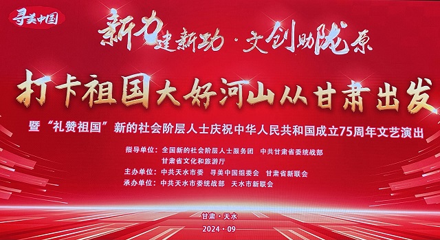 9月23日上午,由全国新的社会阶层人士服务团、中共甘肃省委统战部、甘肃省文化和旅游厅指导,中共天水市委、寻美中国组委会、甘肃省新联会主办,中共天水市委统战部、天水市新联会承办的打卡祖国大好河山从甘肃出发暨“礼赞祖国”新的社会阶层人士庆祝中华人民共和国成立75周年文艺演出活动在天水启幕。中央统战部六局局长续总成,甘肃省委统战部副部长杜怀明,天水市委副书记、市长刘力江,甘肃省文化和旅游厅党组成员、副厅长龚佳佳,服务团全体成员,各市州分管领导出席活动。