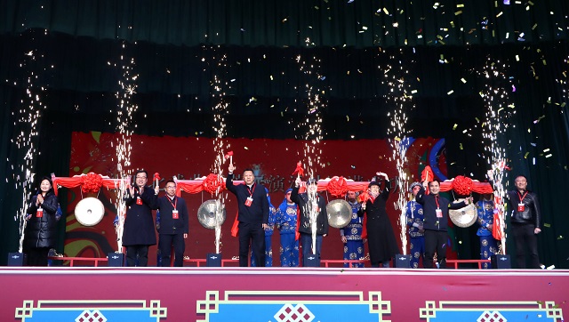 3月16日上午的启动仪式在中国戏剧梅花奖获得者袁丫丫、韦小兵、王航,以及中国戏曲表演艺术2022年度新秀李晓晨等戏曲表演艺术家,联袂演绎的戏曲联唱《满园春》中精彩开启。秦腔《铡美案》《黄鹤楼》《五典坡》《杨家将》、碗碗腔《金碗钗》和眉户《梁秋燕》等经典唱段和应接不暇的戏曲绝活轮番上演,展现出西北戏曲的深厚底蕴与时代风采。来自甘肃秦腔艺术剧院、兰州市戏曲剧院、天水西秦腔研究院、兰州文理学院等戏曲院团和甘肃省内高校的文艺工作者纷纷亮出绝活,台下喝彩声不断。著名画家赵万顺先生向兰州市秦腔博物馆捐赠其精心创作,长达10米、描绘了35个经典戏曲人物形象的《群英荟萃》美术长卷作品,生动展现戏曲艺术的独特魅力,为活动增添浓厚的艺术氛围。随后,中国戏曲表演学会会长黎继德与西北五省区和新疆生产建设兵团文旅部门及甘肃省文联、天水市、秦州区相关负责人共同上台鸣锣,正式启动“跟着艺术游甘肃”西北戏曲荟萃展演系列活动。