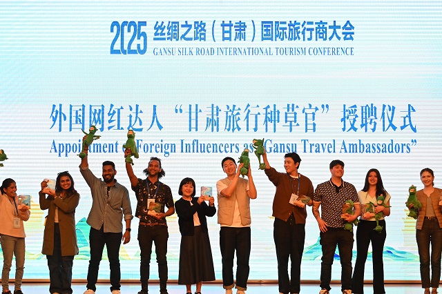 甘肃省文化和旅游厅副厅长龚佳佳对参加本次大会的嘉宾再次表示热烈的欢迎和真挚的感谢,向来自韩国、美国等地的网红达人授予“甘肃网红种草官”的荣誉称号。她期待各国旅行商代表能够提出在线路设计、服务细节、宣传推广和文化体验创新等方面的宝贵意见和建议,并系统总结了本次大会的丰硕成果。通过与各国旅行商的深入交流,达成了一系列合作意向,涵盖旅游产品开发、市场推广、客源互送等多个领域。