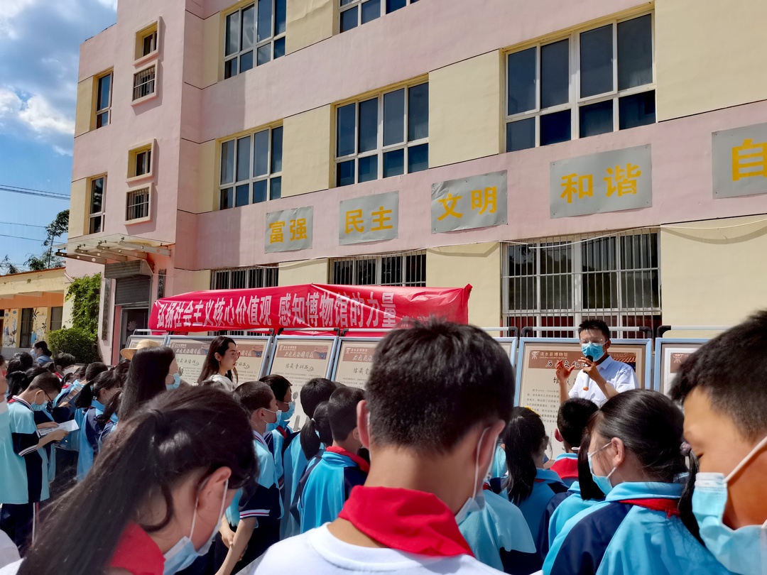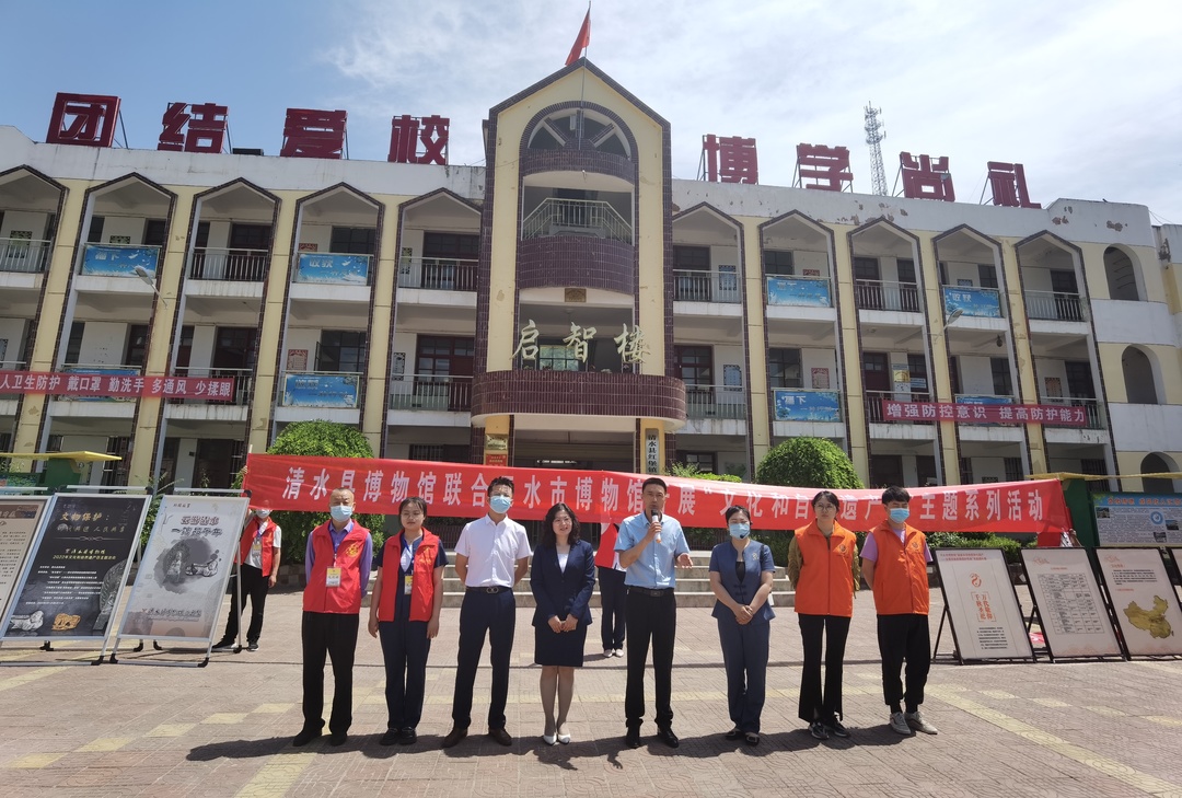 首先,在清水县红堡中学、永清镇马沟小学开展了“流动博物馆进校园”活动,以展板和宣传材料为载体,在市、县讲解员精彩的介绍下,在博物馆志愿者们热情的服务中,让孩子们了解天水市博物馆“国家级非物质文化遗产--太昊伏羲祭典保护传承”专题展、“促进民族团结铸牢中华民族共同体意识”专题展和清水县博物馆馆藏精品文物专题展,天水市博物馆工作人员向清水县马沟幼儿园捐赠了文创产品伏羲庙的吉祥物,天水市、清水县博物馆志愿者参与全程志愿服务,让师生们感受到了天水市、清水县厚重的历史文化,激发了他们保护文化遗产、爱祖国、爱家乡的情怀。