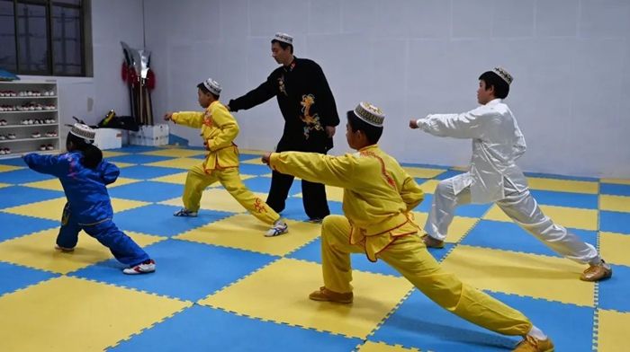 十路弹腿是流传于张家川县境内的一种武术拳法,自清德宗光绪年,由石太垂、石得胜将十路弹腿从山东所学传入张家川。80年代,第三代传承人李平洲大量招入学徒,将十路弹腿发扬光大。十路弹腿属于长拳类,动作舒展大方,大开大合,运动量较大,适合青少年初级基本功训练。其特征以腿功见长,拳势古朴,功架完整,刚劲有力,动作精悍,招数多变,攻防迅疾,爆发力强。十路弹腿的内容总共有十路,分别是一抡一大片,英雄扯钢钻,抄砸汤瓶势,扫腿把路拦,架打掏心捶,搂打上下翻,老太桄线锤,八步使连环,捧锁分两边,箭弹双飞燕。将这十路招数连起来练是一趟拳术,可单练,也可随口令集体练。