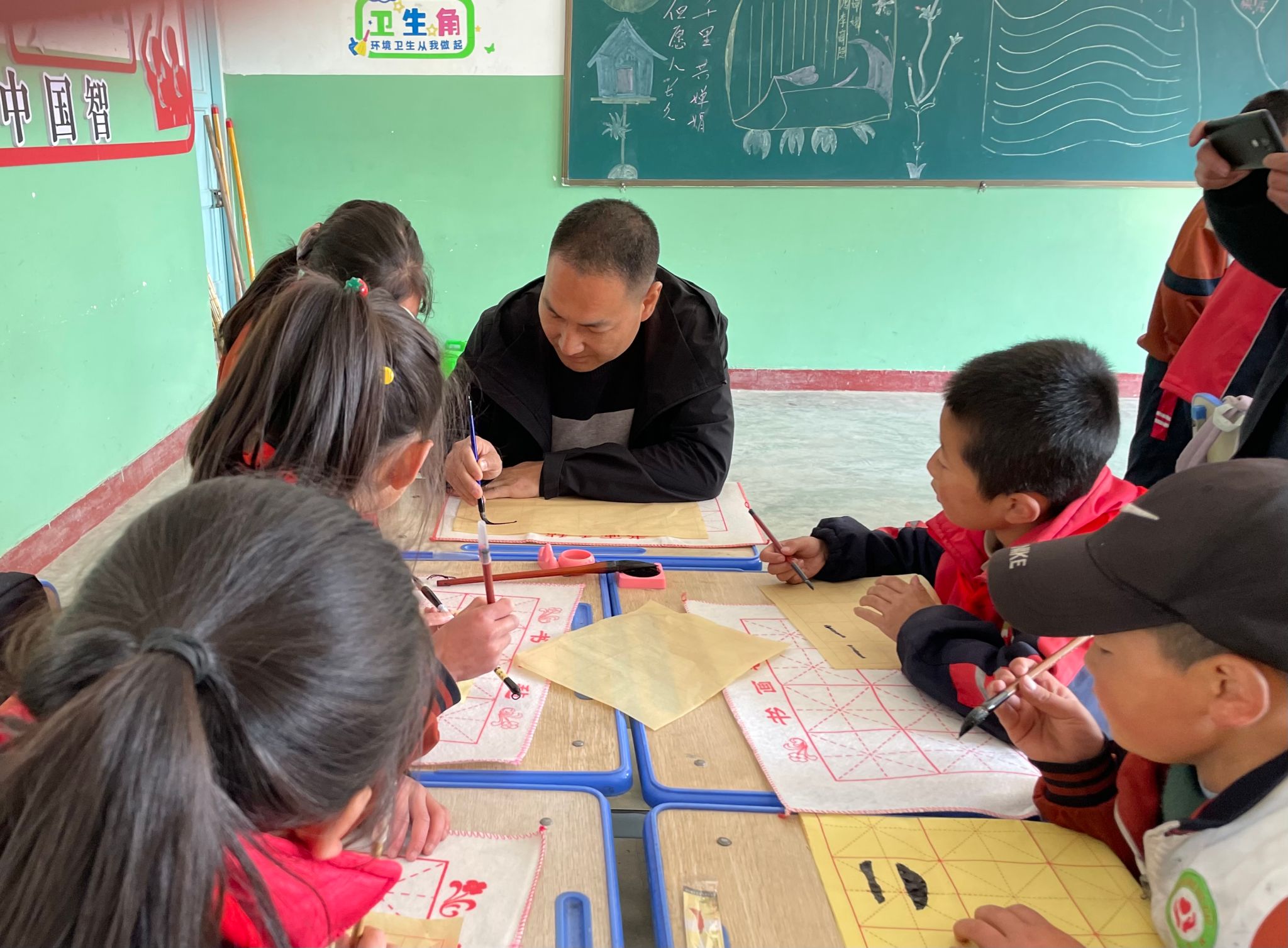 这次书法进课堂活动,不仅是对“三抓三促”行动的践行,而且把书法的种子播散在了这些山区孩子的心田。他们清澈的双眸,对书法的灵性,现场书写的认真劲儿,显示出书法进课堂的成效,显示出书法艺术的魅力。