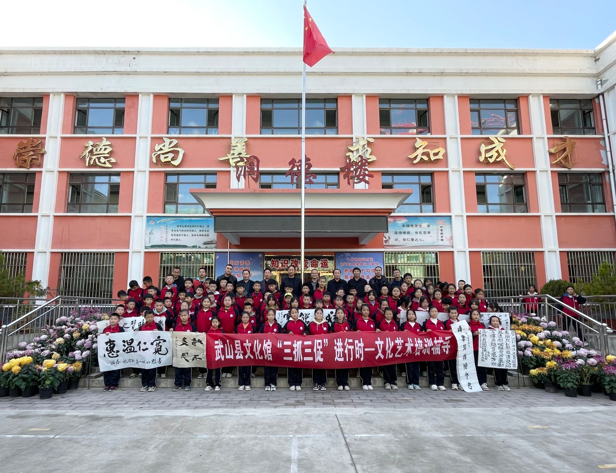 龙川秋意漾,校园翰墨香。10日19日,由武山县文化馆组织,县文化馆专业书法人员和县书协部分成员走进马力镇北顺九年制学校,开展书法进课堂活动。