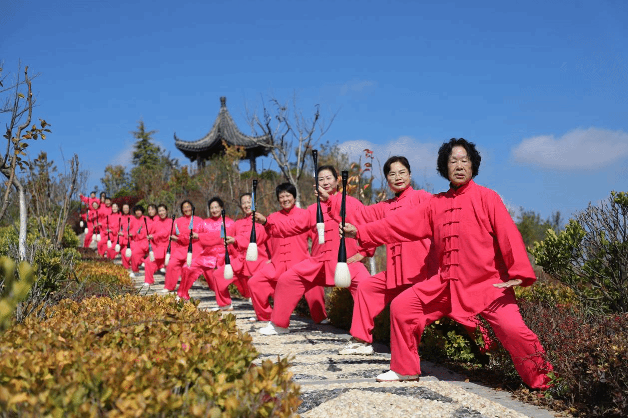 文艺团队先后表演了太极毛笔、太极扇、四十式太极拳、民间秧歌等文艺节目,内容丰富,形式多样,彰显了晚晴风采,促进了文旅融合。