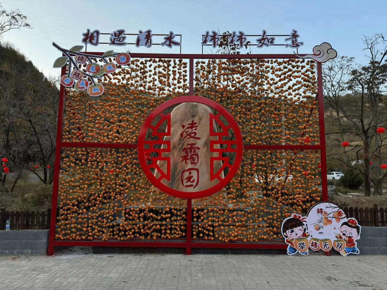 10月中旬以来,清水县凌霜园格外引人注目,不少游客纷纷慕名前来打卡拍照,寻访乡村的宁静与纯美。凌霜园是清水县小泉峡旅游长廊中的一处节点景点,最早是小泉村王家沟口的一处河谷地带,是传统的柿子种植区,里面栽植的全是百年以上的柿子树,村民亲切地称此处为“霜园”。今秋清水县文旅局依托景点内丰富的柿子树资源,在凌霜园精心打造了“相遇清水·事事如意”打卡墙,红彤彤的柿子流露着农民群众五谷丰登的喜悦心情,寓意着“柿柿如意”的美好期许,精心的设计,独特的创意与深秋万山红遍、层林尽染的大美秋景融为一体,是清水县秋日新增的一处网红打卡地。