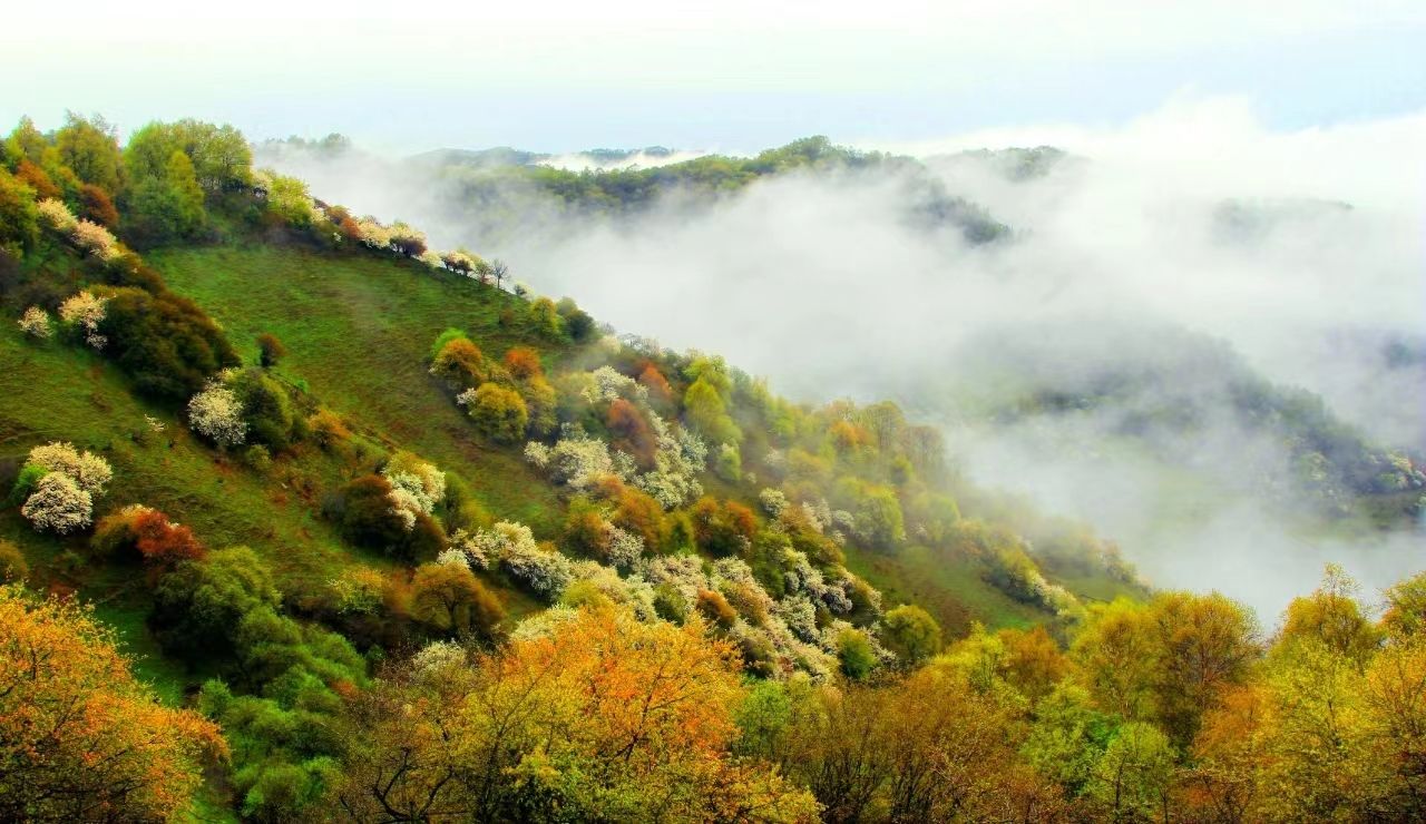 金秋十月的张家川,山河锦绣、秋意盎然。行游在丝路关山、关陇古道深处的丛林秘境,峡谷悠然、林茂草丰、溪流潺潺。秋日的关山,层林尽染、五彩斑斓,红叶似云霞、黄叶如金烁,宛若大自然的调色板,呈现出深浅不一、多色多彩的壮美画卷,让人陶醉其中。
