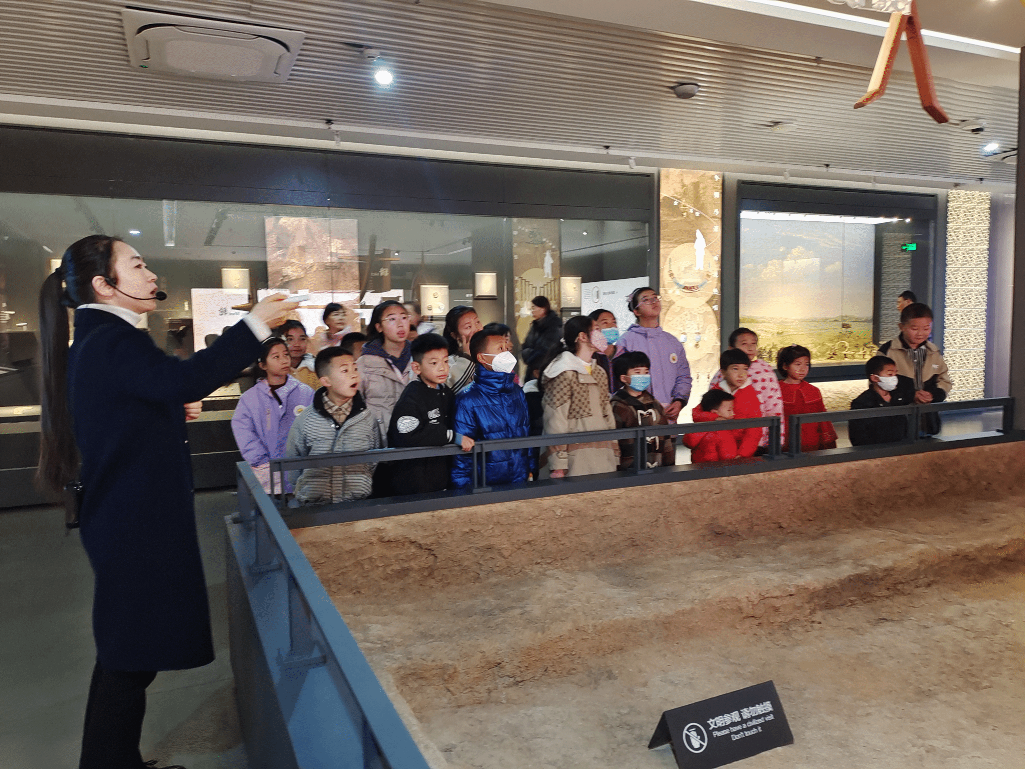 活动开始,讲解员带领同学们参观了马家塬车舆博物馆,从独特的墓葬形制、华贵的人体装饰以及高超的造车技艺了解了战国中晚期活动在张家川一带的西戎文化遗存,通过介绍马家塬墓地出土的不同马车类型及特点、器物用途及内涵,加深了同学们对张家川马家塬西戎文化的了解与认识,切实感受到中华文化的博大精深和深厚底蕴。