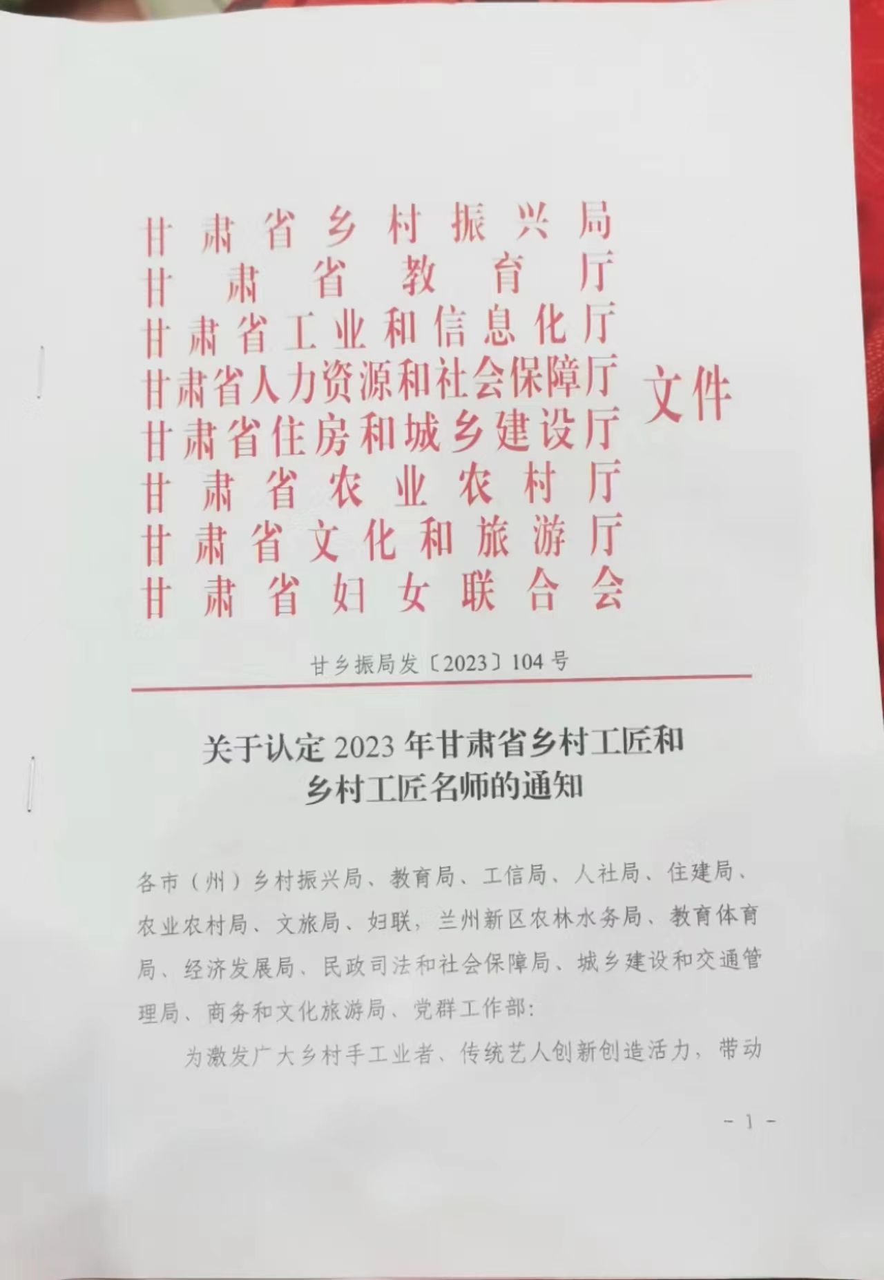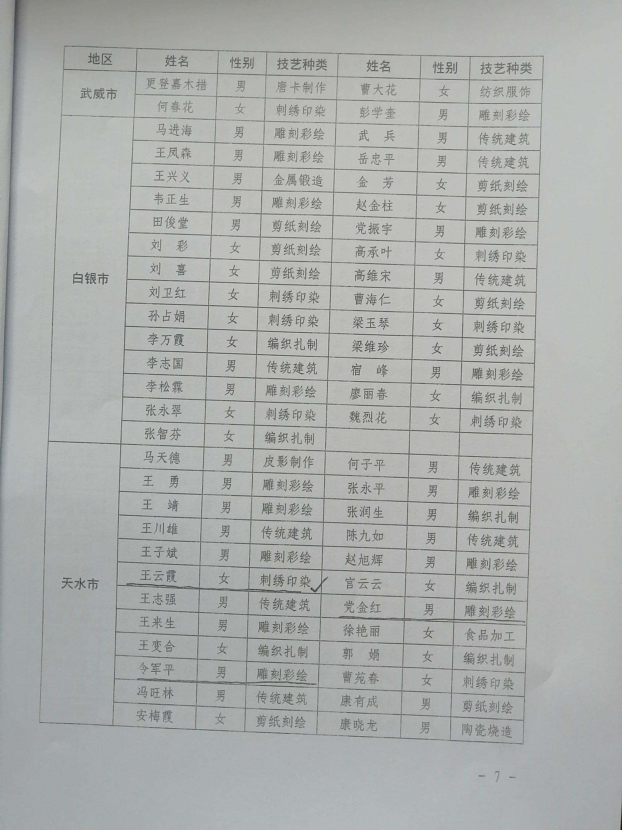 近日,甘肃省乡村振兴局、省教育厅、省工业和信息化厅、人力资源和社会保障厅、省住房和城乡建设厅、省农业农村厅、省文化和旅游厅、省妇女联合会联合公布2023年甘肃省乡村工匠名单,武山刺绣传承人王云霞名列“刺绣印染”、砖雕传承人党金红和鸳鸯玉雕传承人令军平名列“雕刻彩绘”名单。这既是对三个传承人在各自领域取得成绩的肯定,又是对武山非遗保护传承工作成效的体现。