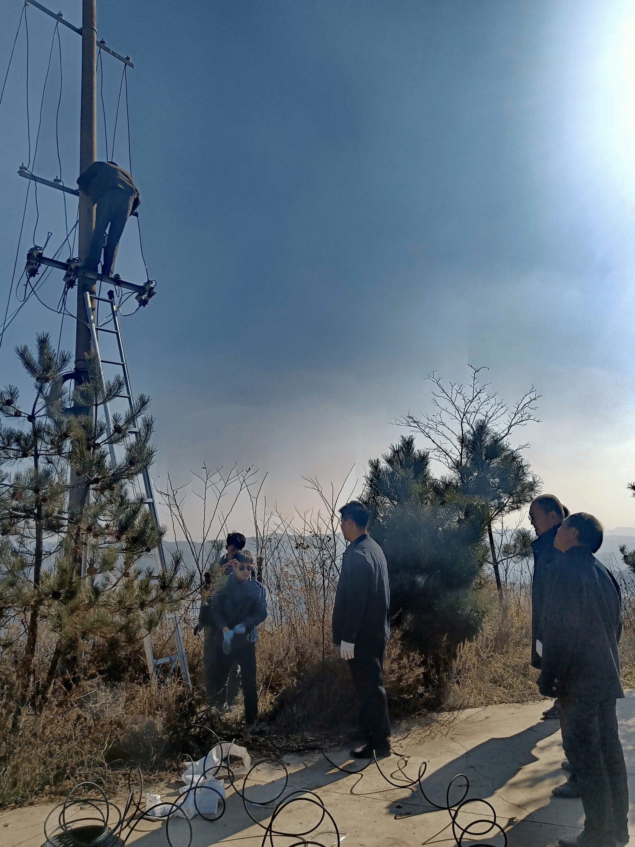 由于山顶风较大,对改造工作带来了很大困难,寒冷的天气也冻得抢修人员手指发木,但大家不畏严寒,分工合作,奋力抢修,通过三个多小时的奋战,终于完成了线路改修任务。