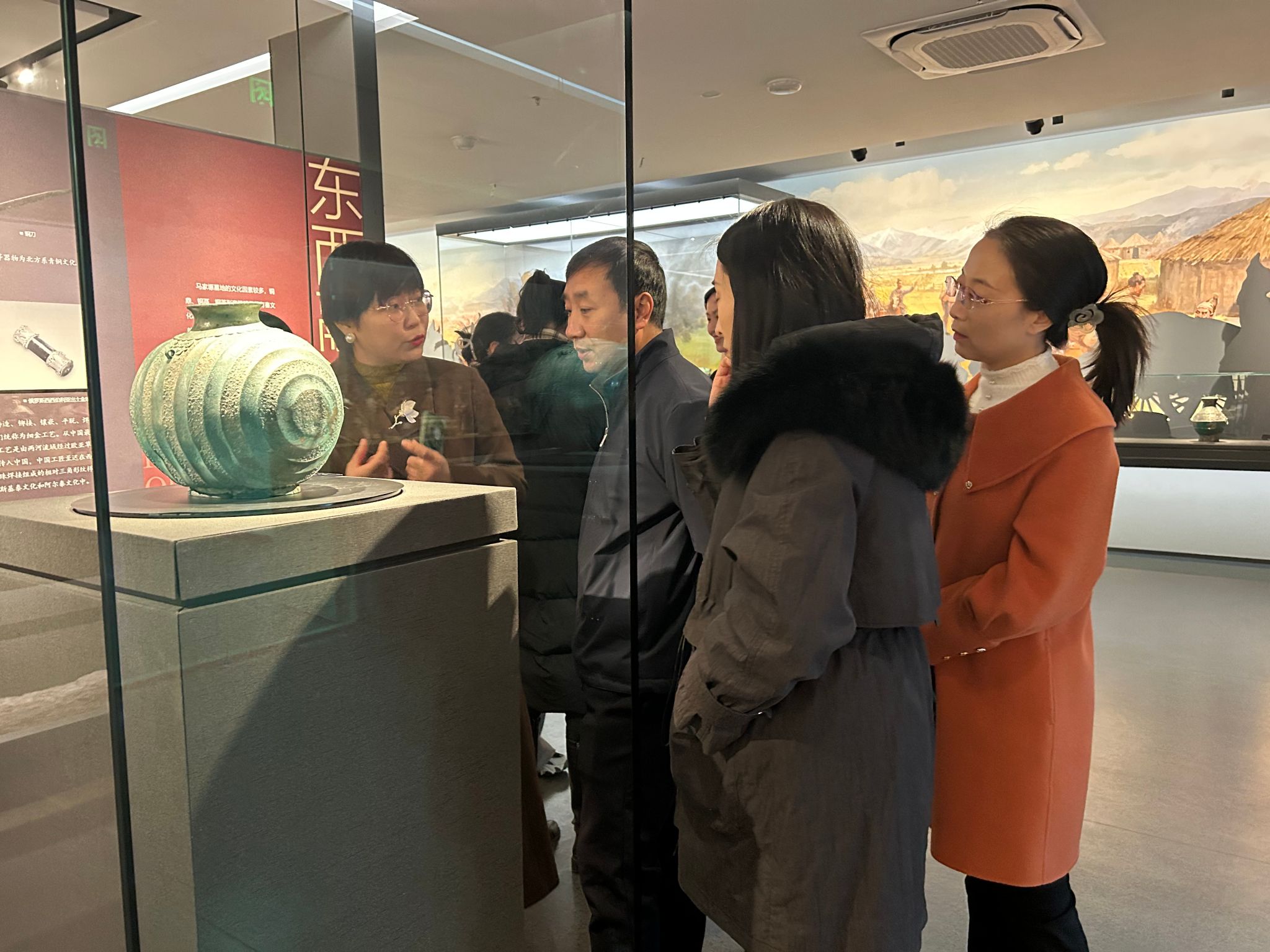 天水市博物馆同仁先后参观了马家塬车舆博物馆、张家川历史文物陈列、张家川民俗风物陈列、铸牢中华民族共同体意识展览馆和照古鉴今·宝镜风华——秦安县张家川县馆藏铜镜联合专题展。通过参观,市博同仁们较为系统地了解了张家川的历史文化和独特的马家塬西戎文化,尤其对马家塬车舆博物馆的陈列展览和讲解服务给予肯定和称赞,并对讲解工作提出建设性意见和建议。