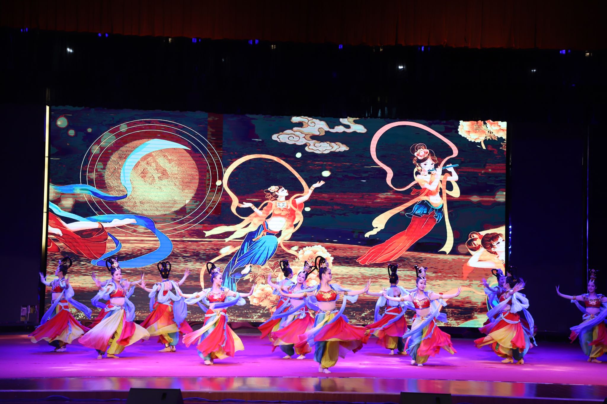 《玉润武山》取材于省级非遗武山夜光杯雕,以鸳鸯玉为材质的夜光杯雕等玉雕品成为最受欢迎的旅游产品。《玉润武山》用舞蹈语言演绎了鸳鸯玉雕的前世今生和唯美大气,讲述了玉雕里的人文故事,为“陇上玉器之乡”名片赋予了新的灵气,谱写了新的篇章。《渭川福音》以祈福圣地水帘洞石窟为背景,以拉梢寺和千佛洞飞天壁画为创作灵感,把周边群众千年不息的祈福文化和石窟文化研学游相结合,精心创作排练而成。拉梢寺、千佛洞壁画飞天与敦煌壁画的飞天一脉相承,栩栩如生,有脱壁欲出之感,呼之欲出之态,满壁风动之韵。服饰艳而不俗,动作优雅古典,舞姿轻盈飘逸,衣袂飘飘,彩带旋舞,颇有飞天临凡之韵,加上背景的契合,让观众对祈福圣地水帘洞产生无限的遐思和向往,燃起一睹为快的念想。