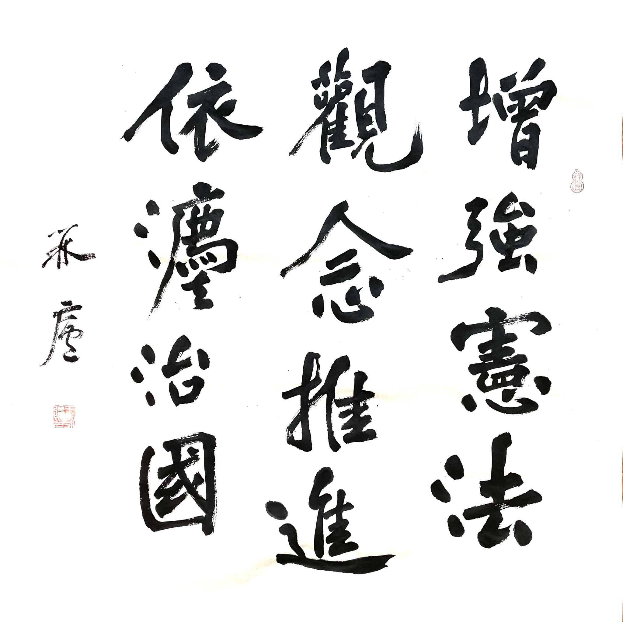 县文化馆充分发挥资源优势,组织馆内书法老师以法治建设为内容创作书法作品,用书法的形式弘扬宪法精神,增强普法教育效果,让广大民众感受法治与书法融合的魅力。通过用文艺赋法的方式,将法治宣传与传统文化相结合,寓教于乐宣传法治知识,弘扬宪法精神,充分发挥书法艺术的引领和熏陶作用,传播法治于墨香。